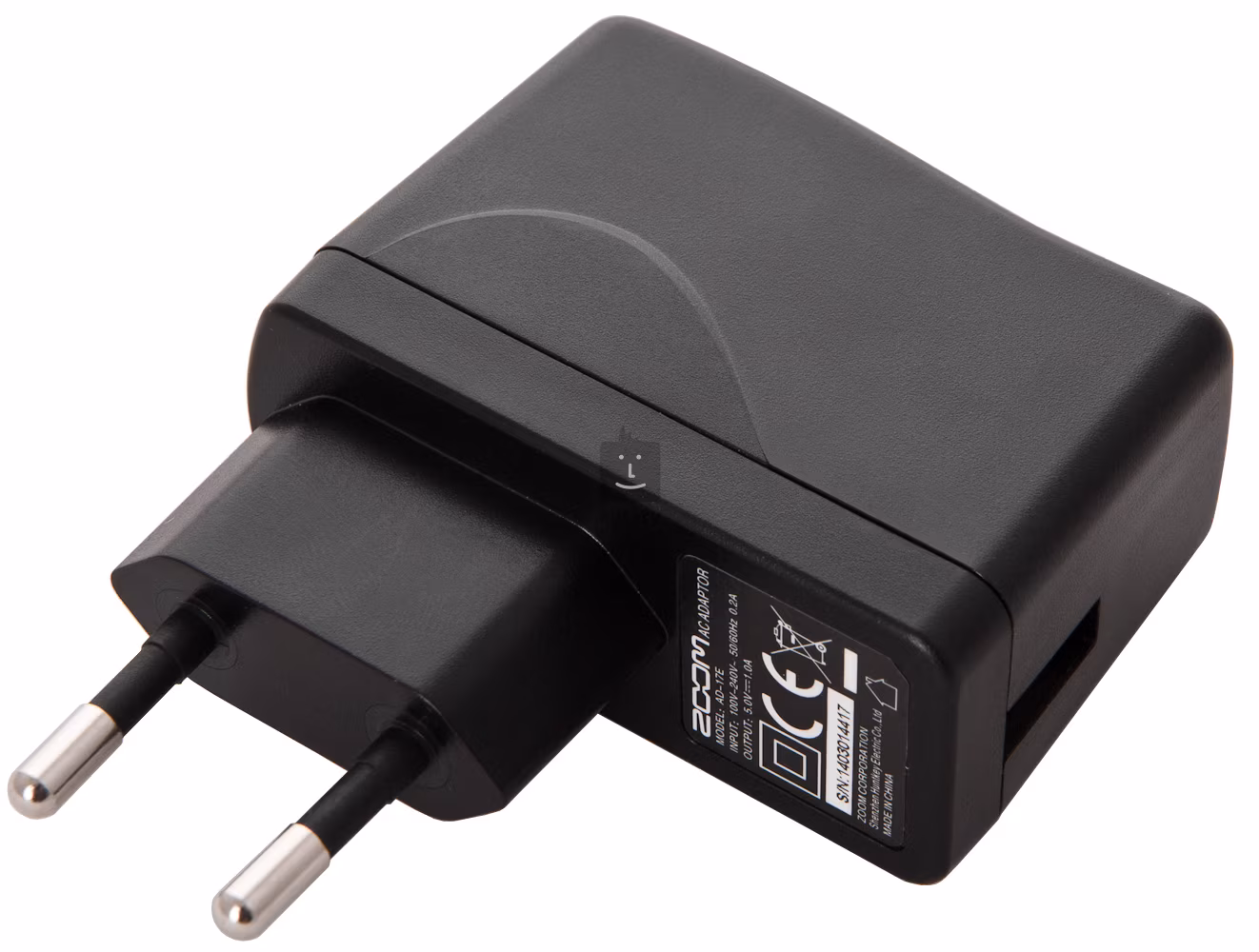 AD-17E ist ein USB-Adapter (Eurostecker) für Zoom-Recorder (F1, F2, F6, H1, H1n, H2n, H5, H6, LiveTrak L-8, R8, Q2HD, Q2n, Q2n, Q2n-4K, Q4, Q4n, Q8, U-22, U-24, U-44). USB-Kabel ist nicht im Lieferumfang enthalten.