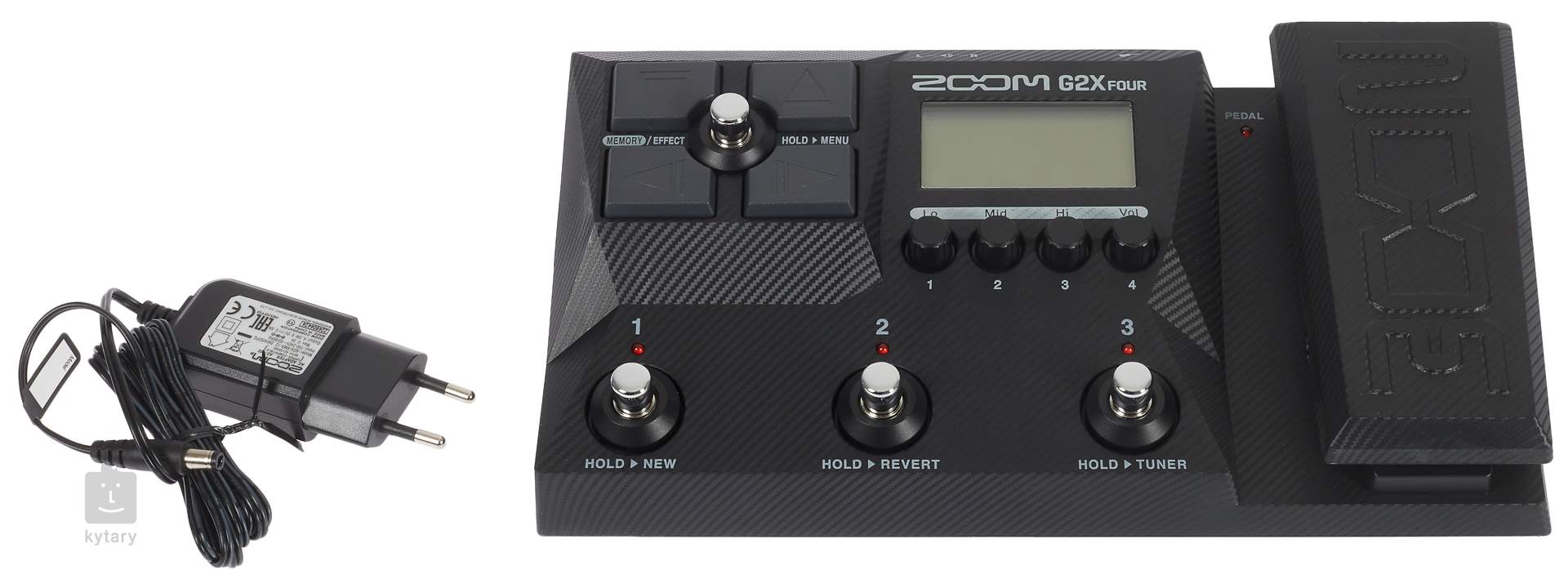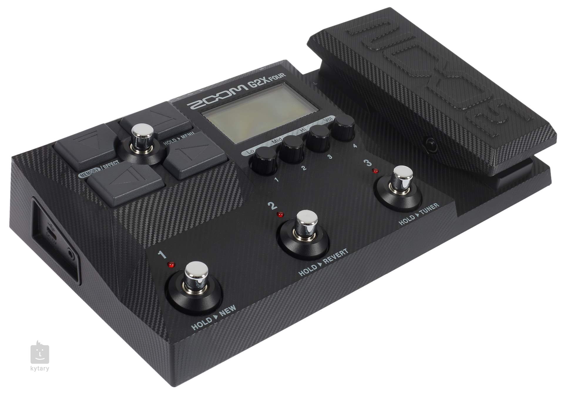 Die zweite Generation des Zoom G2X Four Gitarren-Multieffekts bietet mehr als 100 Effekte und Instrumentensimulationen (22 Instrumenten-/Lautsprechersimulationen, 79 Effekte) in einem kompakten Format, in dem bis zu 7 Effekte gleichzeitig verwendet werden können, 250 vorgespeicherte Presets (insgesamt 300 Speicherplätze), einen Looper mit 80 Sekunden Aufnahmezeit, 68 großartig klingende Drum-Patterns, die mit dem Looper synchronisiert werden können, ein Expression-Pedal zur Echtzeit-Steuerung von Lautstärke, Tonhöhe und Wah-Effekten, eine Aux-In-Buchse zur Wiedergabe externer Audiosignale, ein eingebautes Stimmgerät und die Möglichkeit, zusätzliche Effekte und Patches aus der Handy Guitar Lab Software/Bibliothek über USB aufzunehmen, zu bearbeiten und zu speichern.